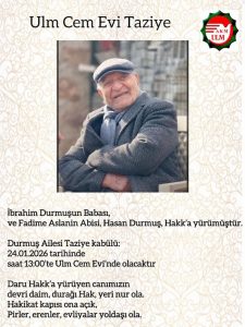 Başta sabır, Durmuş ailesi olmak üzere tüm yakınlarına başsağlığı ve sabırlar diliyoruz.